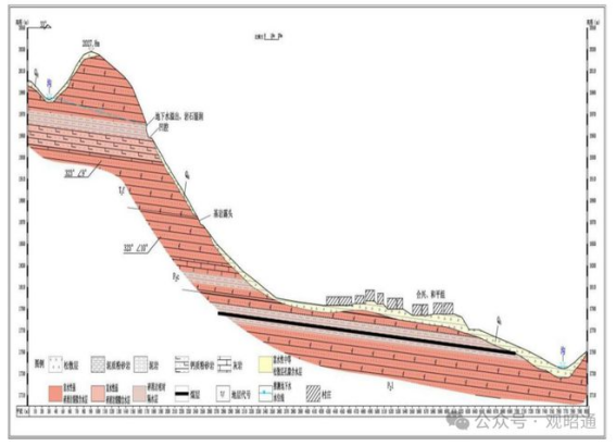 图 7:“1·22”山体滑坡地带水文地质剖面图