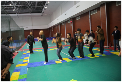 总结大会第二天,公司组织进行团队建设活动。活动开始前,教练组织大家进行舒展准备活动,并分为2队,分别是闪电队、利剑队。紧接着在教练的指导下,大家在队列展示、超音速、蛟龙出海、指压板等活动中进行了比拼。这些活动有些需要团队合作,有的需要考验队员间的相互信任。活动过程中队员们充分发挥了各自的优势和特长,增进了团结协作能力。
