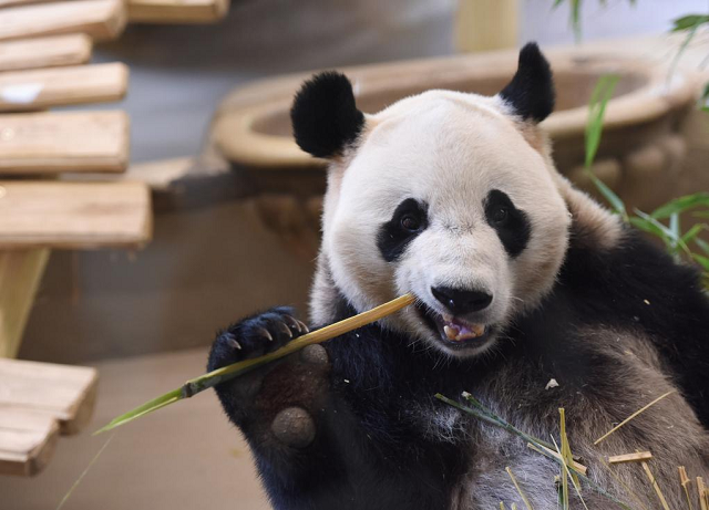 这是2025年5月14日在奥地利首都维也纳的美泉宫动物园拍摄的大熊猫“兰韵”。新华社发(韩鹭摄)